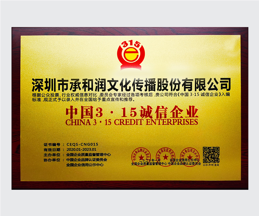 中國(guó)3.15誠(chéng)信企業(yè)稱(chēng)號(hào)